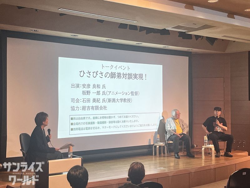 新潟県立近代美術館で開催中の「描く人、安彦良和」で4月18日(土)に開催されたトークイベント「ひさびさの師弟対談実現!」のレポートをサンライズワールドに掲載いたしました。