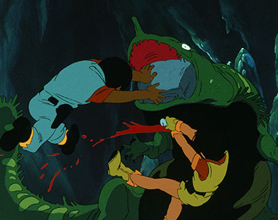 地底深く、ひとまず休息の場を見つけた一同は、キャリア・ビーグルの修理にかかる。一方、学者であるウェイブは、辺りに興味深々、一人勝手に洞窟探検に出かけて行方不明になる。ドリスの心配を察して捜しに出る悠宇とアロイだったが、リーダー・シップを取るアロイの勘違いや巨大なミミズ群との遭遇ですっかり迷ってしまう。しかし、いつしか悠宇にライバル意識を持っていたアロイは、悠宇を臆病者と嘲笑い、二人は一触即発・・・・、というその時、不気味な化け物が二人を襲う。必死に戦う二人はなんとか化け物を撃退し、互いを認め合う存在となるが、帰り道を見つけられず途方に暮れる。